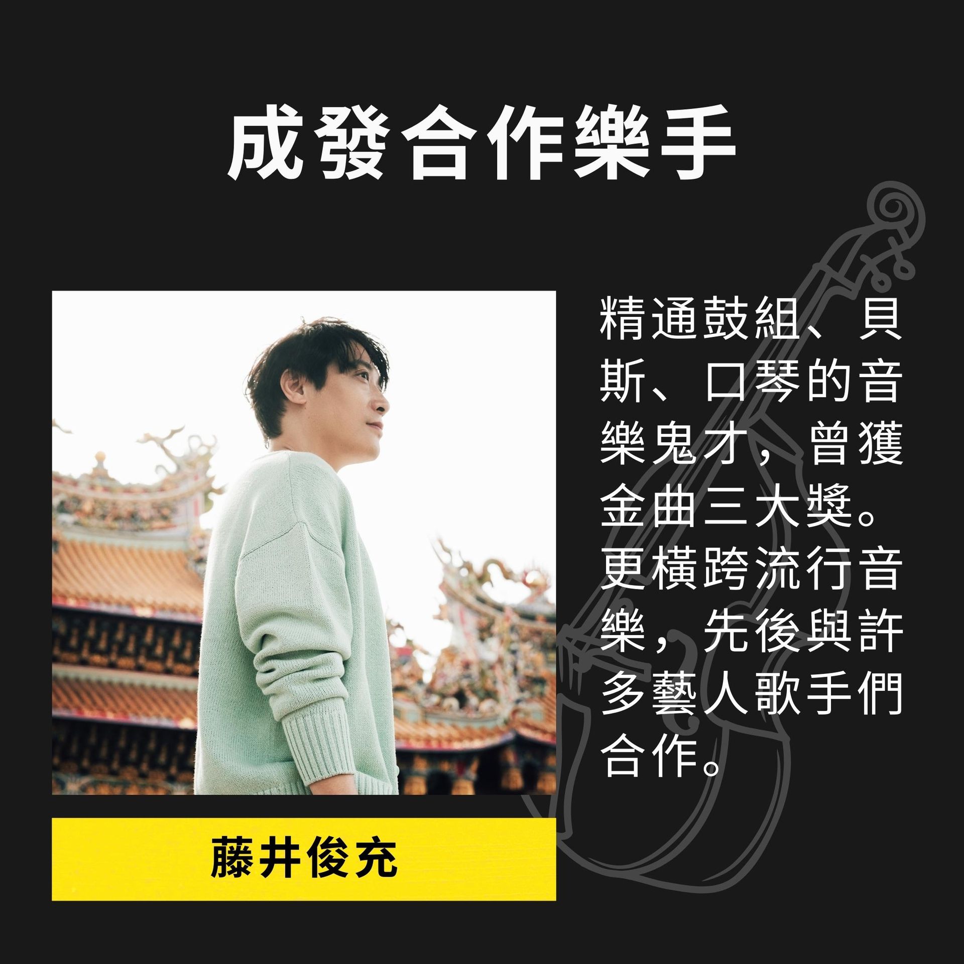 近年活躍於兩岸三地爵士現場,不時與亞洲知名爵士樂手共同演出,如:Eugene Pao、Teriver Cheung、Kerong Chok、Jezrael Lucero、Scott Dodd、Nicholas Bouloukos、Alan Kwan、Patrick Lui、Wong Tak Chung、吉峯勇二郎、福井アミ、村田千紘、葉賀璞、黃子瑜……等等。