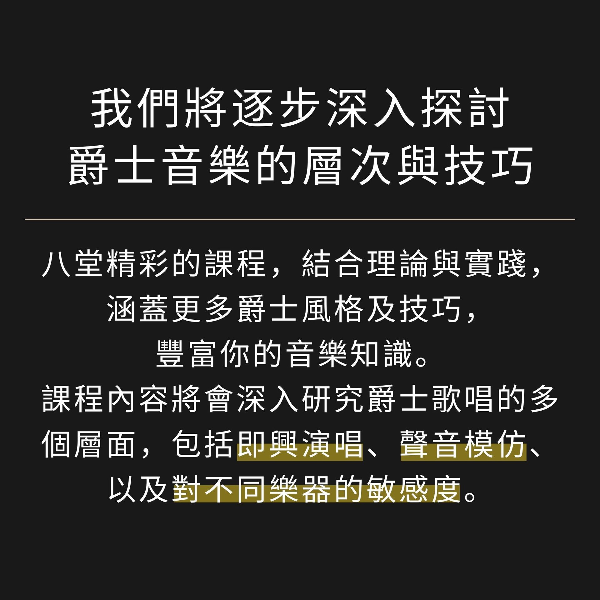 爵士歌曲詮釋 - 引導學生學習如何詮釋歌曲,而非單純只是背誦般的演唱