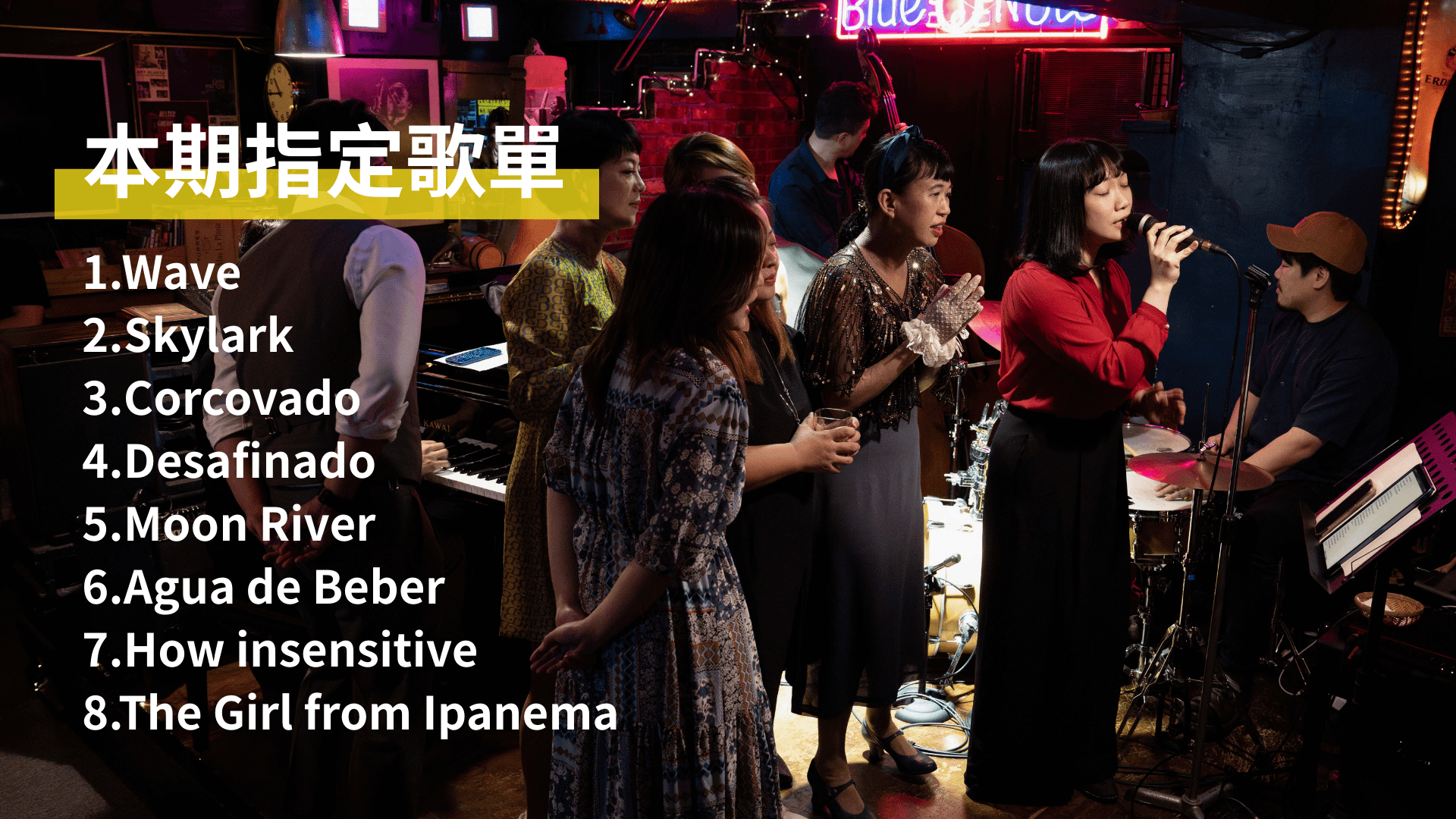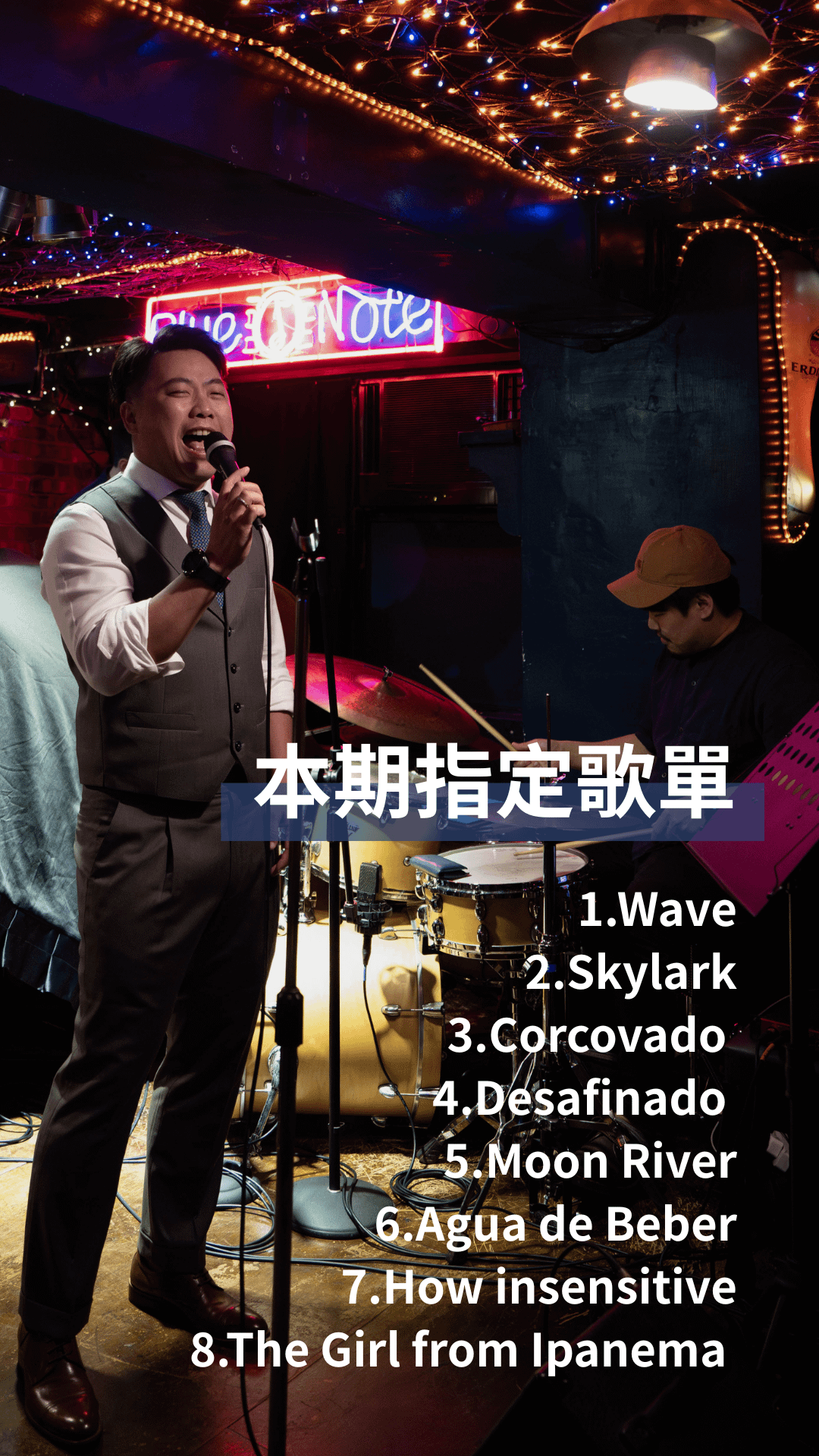 這些歌曲橫跨南美與北美的音樂語言,從 Jobim 的輕柔節奏與簡潔旋律,到 Mercer 詩意盎然的英文歌詞,構成一場關於聲音與詩詞的對話。透過學習這些作品,你將能更深刻地理解 Bossa Nova 的節奏特質、語言咬字與情緒表達,同時感受英文詞作在旋律中的流動與詩性。